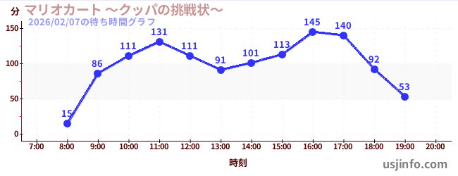• マリオカート ~クッパの挑戦状~$B$N(B2026年02月07日の待ち時間