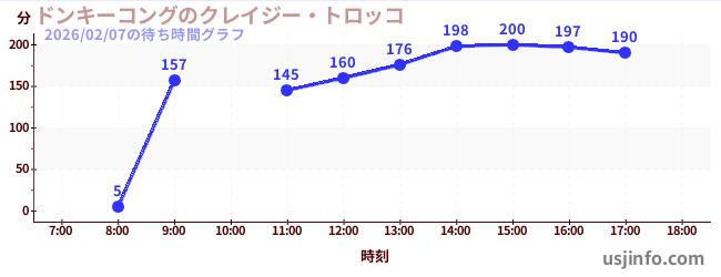 • ドンキーコングのクレイジー・トロッコ$B$N(B2026年02月07日の待ち時間