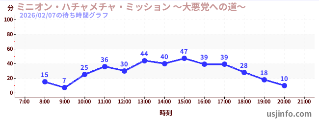• ミニオン・ハチャメチャ・ミッション ~大悪党への道~$B$N(B2026年02月07日の待ち時間