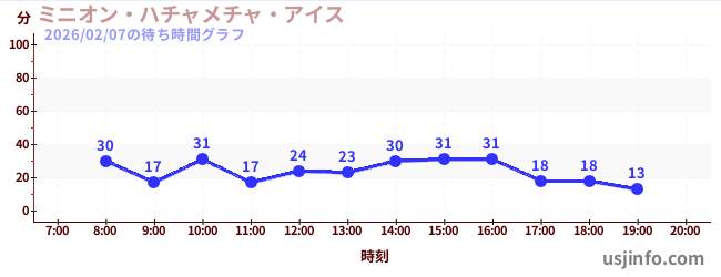 • ミニオン・ハチャメチャ・アイス$B$N(B2026年02月07日の待ち時間
