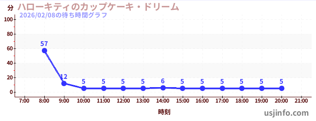 • ハローキティのカップケーキ・ドリーム$B$N(B2026年02月08日の待ち時間