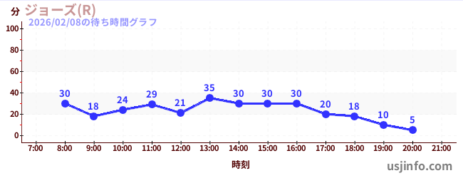 • ジョーズ(R)$B$N(B2026年02月08日の待ち時間