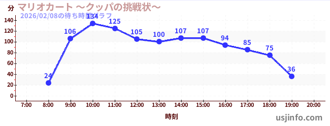 • マリオカート ~クッパの挑戦状~$B$N(B2026年02月08日の待ち時間