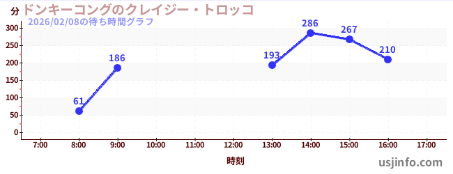 • ドンキーコングのクレイジー・トロッコ$B$N(B2026年02月08日の待ち時間