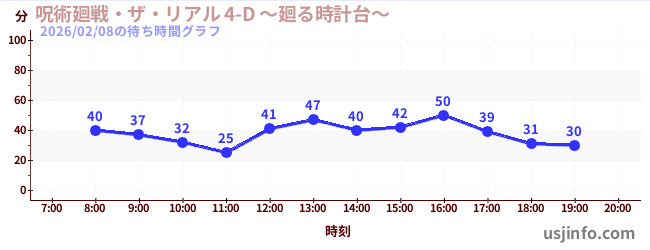 • 呪術廻戦・ザ・リアル 4-D ~廻る時計台~$B$N(B2026年02月08日の待ち時間