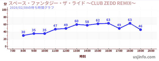 • スペース・ファンタジー・ザ・ライド ~CLUB ZEDD REMIX~$B$N(B2026年02月08日の待ち時間