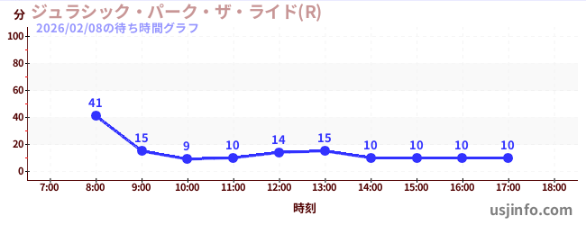 • ジュラシック・パーク・ザ・ライド(R)$B$N(B2026年02月08日の待ち時間