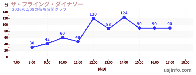 • ザ・フライング・ダイナソー$B$N(B2026年02月08日の待ち時間