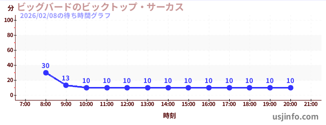 • ビッグバードのビックトップ・サーカス$B$N(B2026年02月08日の待ち時間