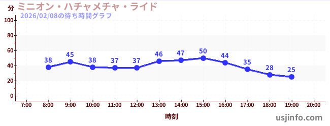• ミニオン・ハチャメチャ・ライド$B$N(B2026年02月08日の待ち時間