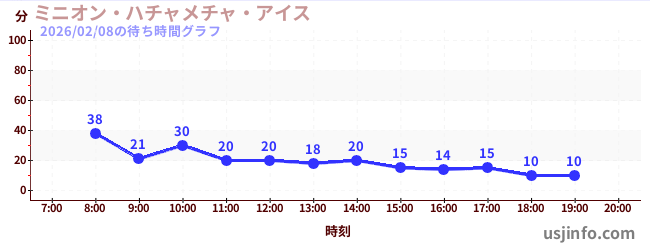• ミニオン・ハチャメチャ・アイス$B$N(B2026年02月08日の待ち時間