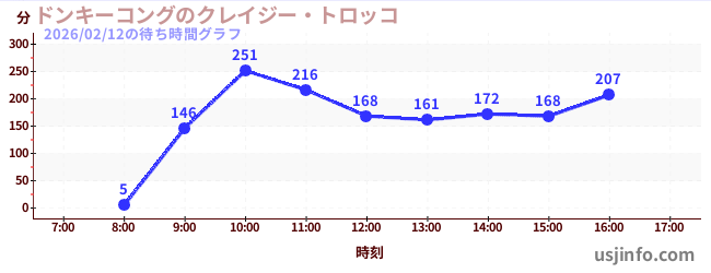 • ドンキーコングのクレイジー・トロッコ$B$N(B2026年02月12日の待ち時間