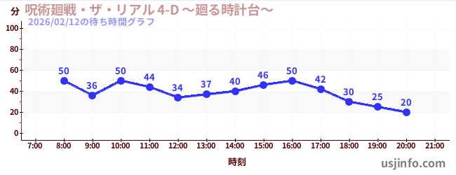 • 呪術廻戦・ザ・リアル 4-D ~廻る時計台~$B$N(B2026年02月12日の待ち時間