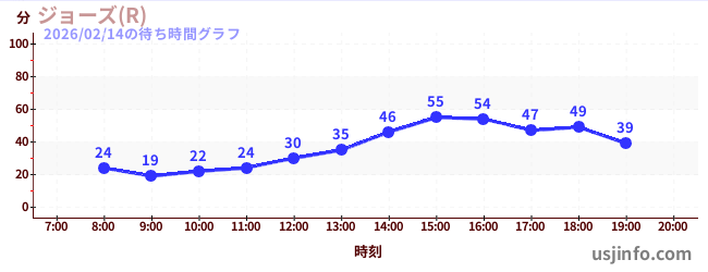 • ジョーズ(R)$B$N(B2026年02月14日の待ち時間