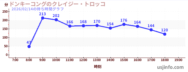 • ドンキーコングのクレイジー・トロッコ$B$N(B2026年02月14日の待ち時間