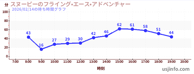 • スヌーピーのフライング•エース•アドベンチャー$B$N(B2026年02月14日の待ち時間