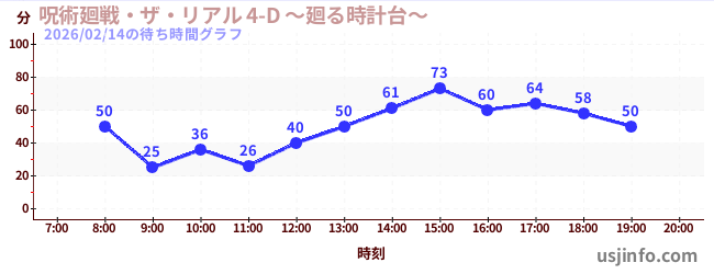 • 呪術廻戦・ザ・リアル 4-D ~廻る時計台~$B$N(B2026年02月14日の待ち時間