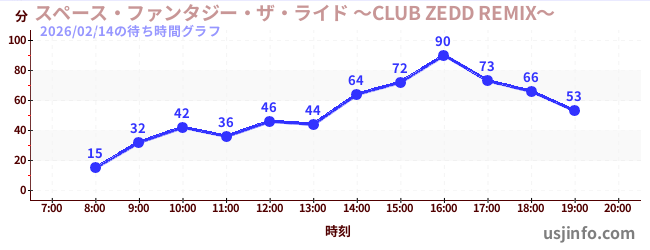 • スペース・ファンタジー・ザ・ライド ~CLUB ZEDD REMIX~$B$N(B2026年02月14日の待ち時間