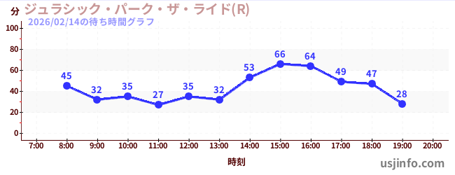 • ジュラシック・パーク・ザ・ライド(R)$B$N(B2026年02月14日の待ち時間
