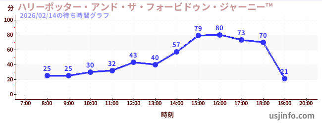• ハリーポッター・アンド・ザ・フォービドゥン・ジャーニー™$B$N(B2026年02月14日の待ち時間