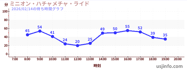 • ミニオン・ハチャメチャ・ライド$B$N(B2026年02月14日の待ち時間