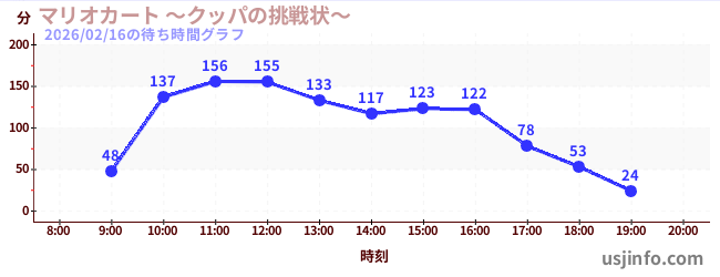 • マリオカート ~クッパの挑戦状~$B$N(B2026年02月16日の待ち時間