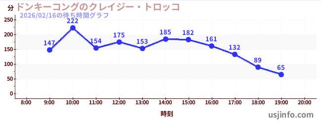 • ドンキーコングのクレイジー・トロッコ$B$N(B2026年02月16日の待ち時間