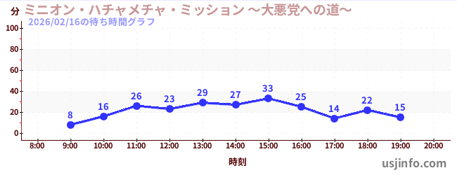 • ミニオン・ハチャメチャ・ミッション ~大悪党への道~$B$N(B2026年02月16日の待ち時間