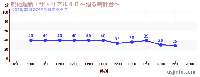 • 呪術廻戦・ザ・リアル 4-D ~廻る時計台~$B$N(B2026年02月16日の待ち時間