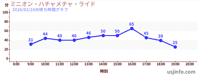 • ミニオン・ハチャメチャ・ライド$B$N(B2026年02月16日の待ち時間