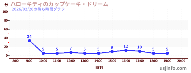 • ハローキティのカップケーキ・ドリーム$B$N(B2026年02月20日の待ち時間