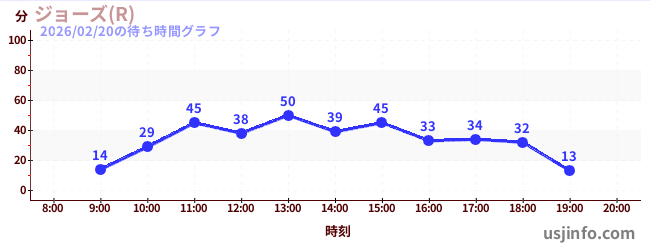 • ジョーズ(R)$B$N(B2026年02月20日の待ち時間