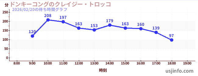 • ドンキーコングのクレイジー・トロッコ$B$N(B2026年02月20日の待ち時間