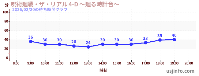 • 呪術廻戦・ザ・リアル 4-D ~廻る時計台~$B$N(B2026年02月20日の待ち時間