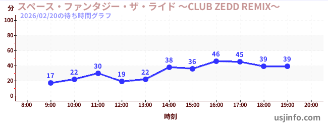• スペース・ファンタジー・ザ・ライド ~CLUB ZEDD REMIX~$B$N(B2026年02月20日の待ち時間