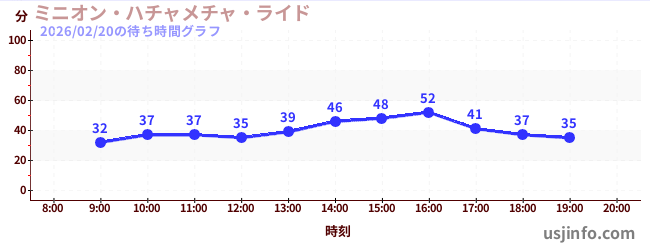 • ミニオン・ハチャメチャ・ライド$B$N(B2026年02月20日の待ち時間