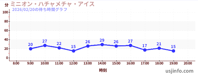 • ミニオン・ハチャメチャ・アイス$B$N(B2026年02月20日の待ち時間