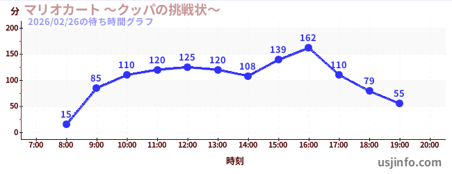 • マリオカート ~クッパの挑戦状~$B$N(B2026年02月26日の待ち時間