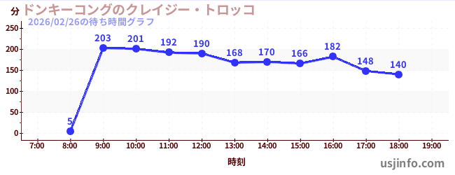 • ドンキーコングのクレイジー・トロッコ$B$N(B2026年02月26日の待ち時間