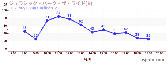 • ジュラシック・パーク・ザ・ライド(R)$B$N(B2026年02月26日の待ち時間