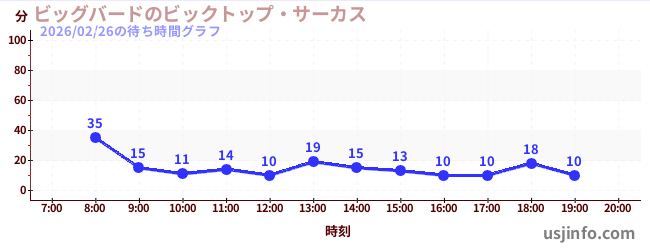 • ビッグバードのビックトップ・サーカス$B$N(B2026年02月26日の待ち時間