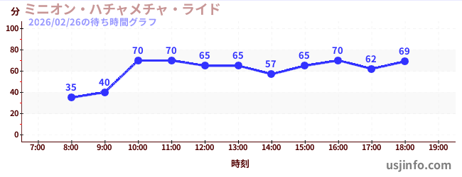 • ミニオン・ハチャメチャ・ライド$B$N(B2026年02月26日の待ち時間