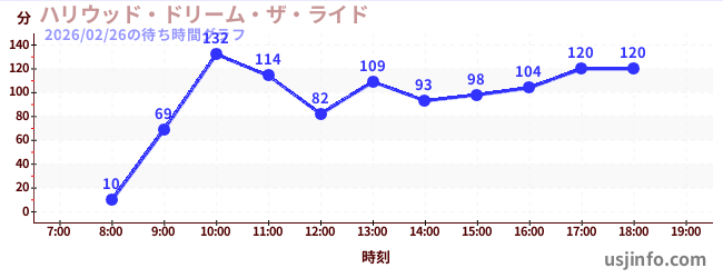 • ハリウッド・ドリーム・ザ・ライド$B$N(B2026年02月26日の待ち時間