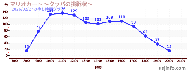• マリオカート ~クッパの挑戦状~$B$N(B2026年02月27日の待ち時間