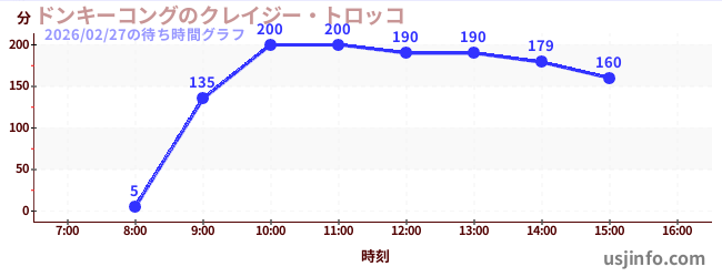 • ドンキーコングのクレイジー・トロッコ$B$N(B2026年02月27日の待ち時間