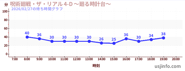 • 呪術廻戦・ザ・リアル 4-D ~廻る時計台~$B$N(B2026年02月27日の待ち時間
