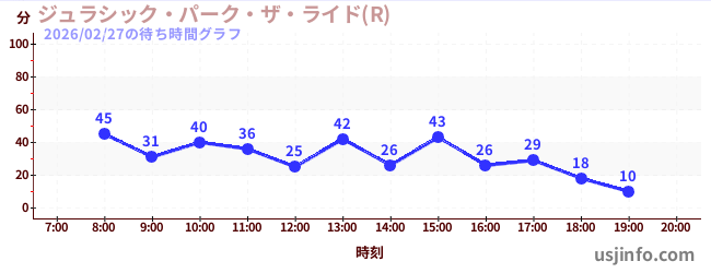 • ジュラシック・パーク・ザ・ライド(R)$B$N(B2026年02月27日の待ち時間