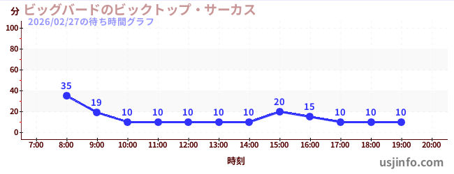 • ビッグバードのビックトップ・サーカス$B$N(B2026年02月27日の待ち時間