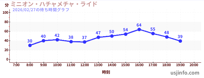 • ミニオン・ハチャメチャ・ライド$B$N(B2026年02月27日の待ち時間