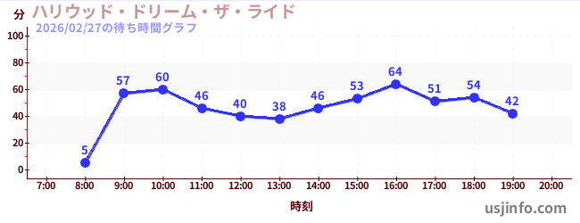• ハリウッド・ドリーム・ザ・ライド$B$N(B2026年02月27日の待ち時間